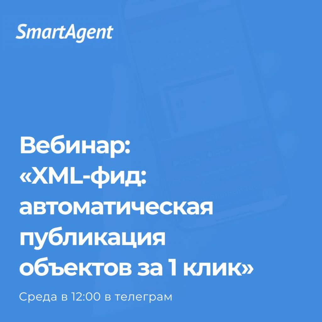 В СРЕДУ В 12:00! Вебинар SmartAgent: «XML-фид: автоматическая публикация объектов за 1 клик»