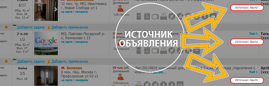 Объекты формируются согласно источникам, откуда они получены. Для всех объектов, взятых с досок объявлений, сайтов и прочих открытых ресурсов для вас будет доступна ссылка.