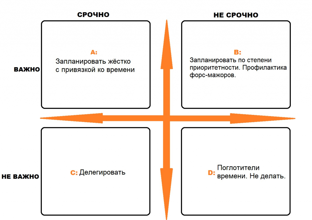 1. Дневной план - завершая каждый день, нужно знать, что у вас запланировано на завтра, и тогда форс-мажоры будут сведены к минимуму.