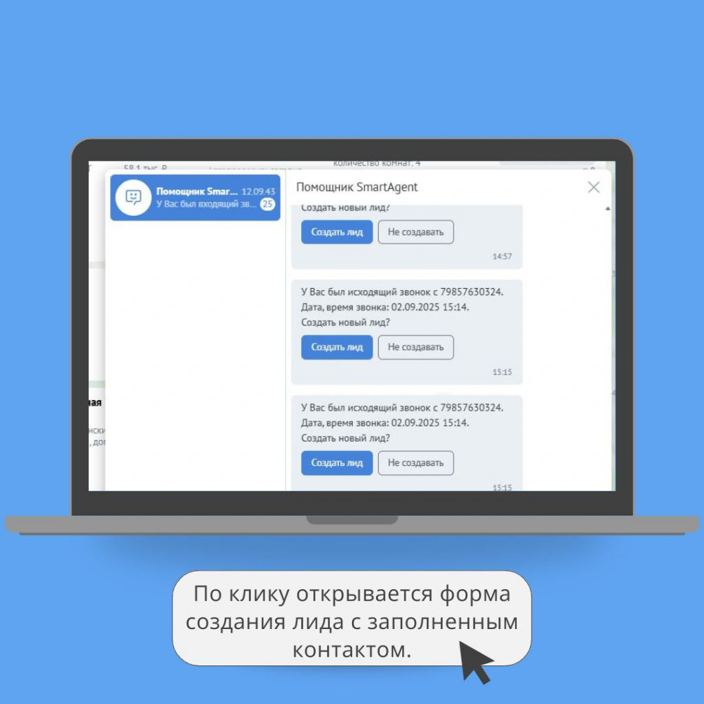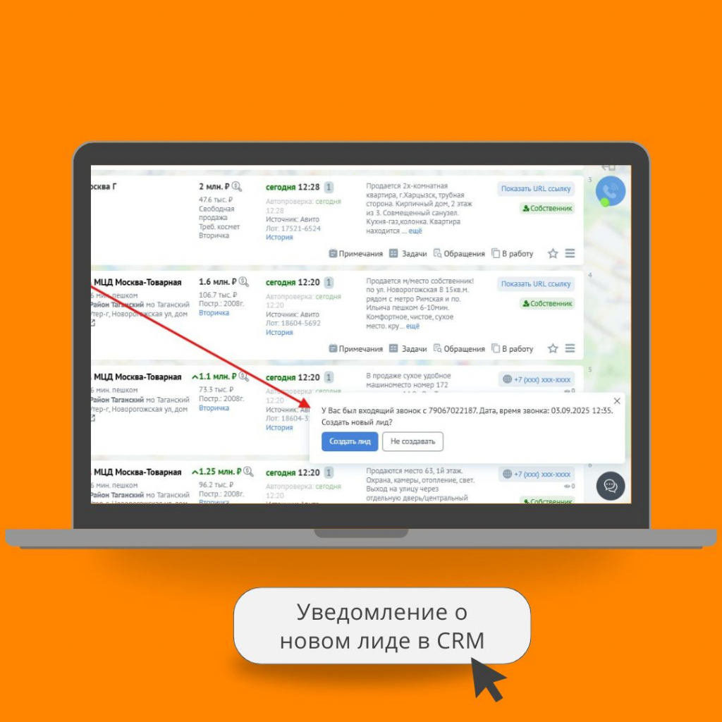 «Перехват лидов» — это умный инструмент, который автоматически фиксирует все входящие и исходящие звонки, чтобы вы больше никогда не потеряли контакт клиента.